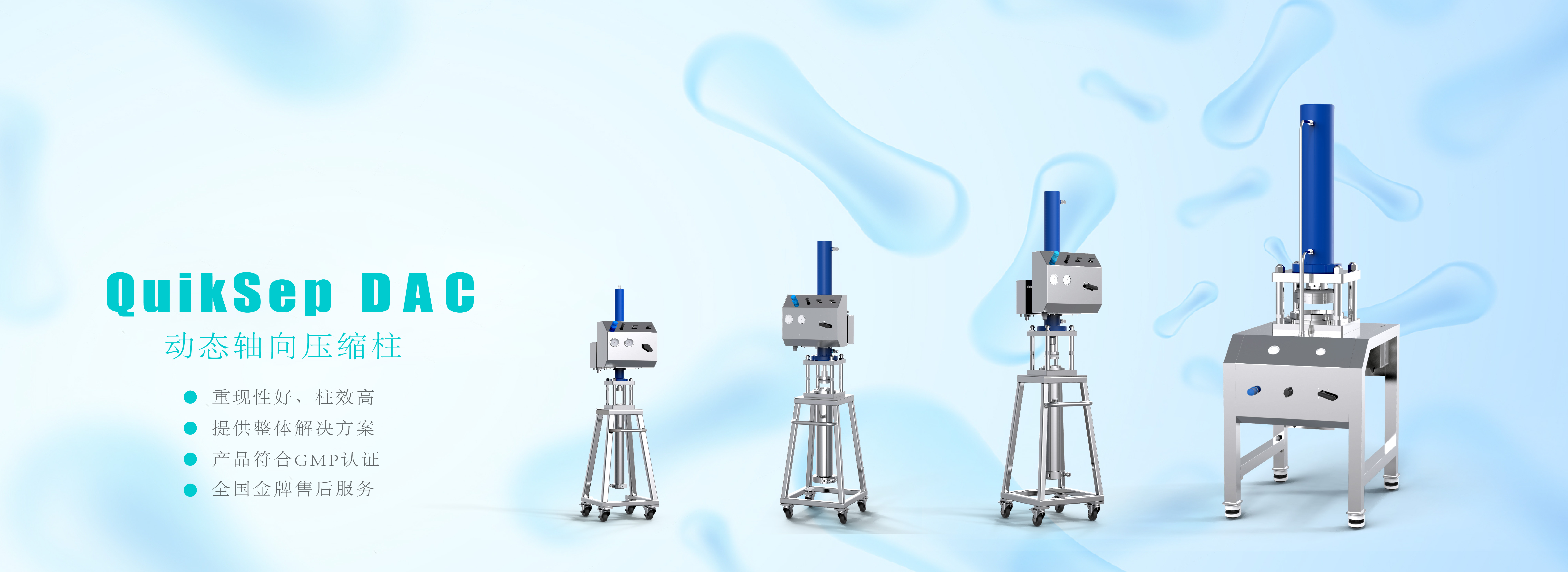動態(tài)軸向壓縮技術(shù)簡稱DAC,是公認(rèn)的能在各種規(guī)模的柱層析中保持良好分離效果的技術(shù),也是當(dāng)今制備色譜領(lǐng)域最佳的裝柱技術(shù)。 當(dāng)用戶需要裝填內(nèi)徑超過100 mm的制備柱時,一般的軸向壓縮技術(shù)無法達(dá)到很高的分離要求,只能采用動態(tài)軸向壓縮技術(shù)。動態(tài)軸向壓縮技術(shù)是唯一能在各種規(guī)模的柱層析中保持良好分離效果的技術(shù),更容易操作,更安全,不易發(fā)生滲漏污染。
