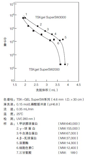 3. TSKgel SuperSW柱有內徑為4μm的顆粒,能實現最高分辨率。窄至4.6mm內徑的柱能在一定量的樣品質量范圍內提高高靈敏度。