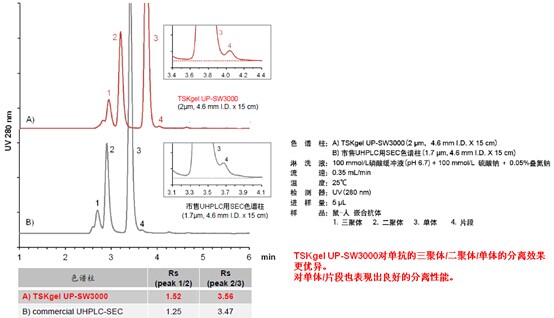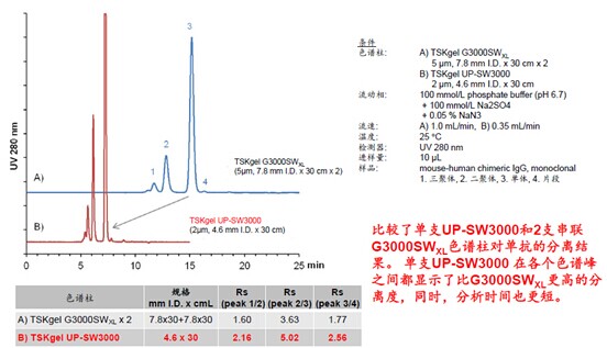2.?與G3000SWXL的對(duì)比(治療性抗體的分離)