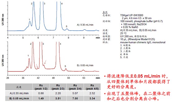 ?????? 抗體藥物中使用的單克隆抗體,在生產(chǎn)、貯藏或運(yùn)輸過程中可能會(huì)形成二聚體等凝聚物,存在引發(fā)不良反應(yīng)的風(fēng)險(xiǎn)因素,故在質(zhì)量控制中采用體積排阻色譜法(SEC)對(duì)單克隆抗體進(jìn)行分離分析。現(xiàn)有的TSKgel?G3000SWXL色譜柱常用于此用途,但仍需要更高分離度以及更短分析時(shí)間的SEC分析技術(shù)。現(xiàn)在2μm粒徑的高性能SEC?色譜柱TSKgel?UP-SW3000已實(shí)現(xiàn)了商品化,給您帶來更高效更快捷的分離體驗(yàn)!
