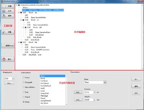 可以依據(jù)UV、電導(dǎo)值等實(shí)現(xiàn)自動收集;能夠自動保存臨時(shí)編輯的方法;可基于時(shí)間、體積、柱體積進(jìn)行自動流程運(yùn)行;采用Block的方法編輯方式,使得方法具有跳轉(zhuǎn)、中斷、嵌套的功能,加上強(qiáng)大的watch指令,能實(shí)現(xiàn)諸多功能,包括自動上樣、自動收集、檢測到氣泡自動切換等功能。