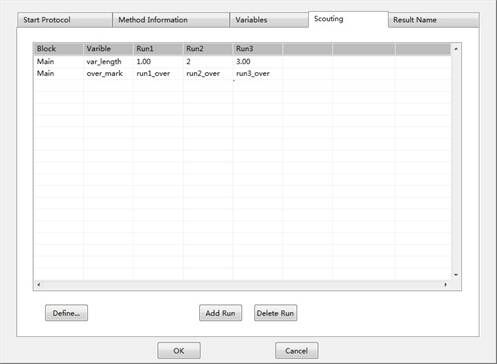 Scouting,即探索功能,通過將方法中的某些參數(shù)編輯成變量,然后通過Scouting設(shè)置,將同樣的方法運(yùn)行多次,每次僅僅是自動修改方法中的某個(gè)或某些參數(shù),從而實(shí)現(xiàn)參數(shù)的自動尋優(yōu),譬如尋找最適合的流速、尋找最適合的裝柱高度等。