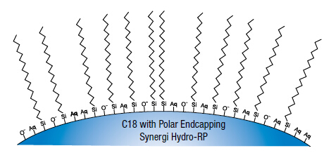 Synergi Hydro-RP反相色譜柱是極性端基封尾的C18固定相,提供極強的疏水選擇性和少量極性選擇性。